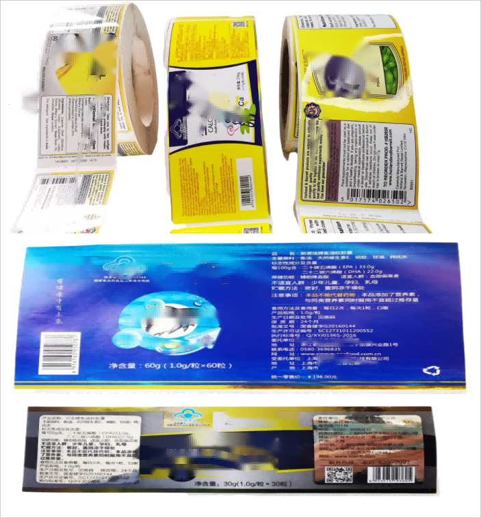 所選用標(biāo)簽適于需要一定的耐久性及防潮的情況,因保健食品大部份都是瓶體包裝,所以材質(zhì)要比較柔軟,易貼,不起翹。