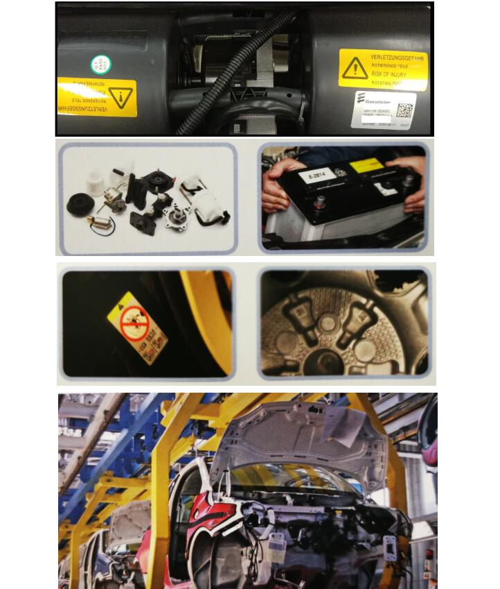 應(yīng)用:發(fā)動(dòng)機(jī)追溯標(biāo)簽,排氣管,輪轂,燈泡,配件,標(biāo)簽,剎車片,卡鉗,車架,引擎蓋組件電子制動(dòng),系統(tǒng)線束,塑料內(nèi)部零件,外部零件,蓄電池,安全警示標(biāo)簽。